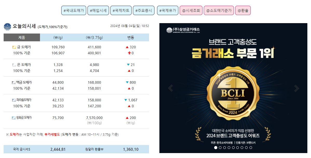 ๊ตญ์ ๊ธ์์ธ๊ฐ ๊ถ๊ธํ๋ค๋ฉด ์ด๋์ ํ์ธํ ์ ์์๊น์? ์ผ์ฑ๊ธ๊ฑฐ๋์ ์น์ฌ์ดํธ์์ ์ค์๊ฐ์ผ๋ก ๊ตญ์ ๊ธ์์ธ๋ฅผ ํ์ธํ ์ ์์ด์. 2024๋ 8์ 3์ผ ๊ธฐ์ค์ผ๋ก ๊ตญ์ ๊ธ์์ธ๋ ์จ์ค๋น 2,440.51๋ฌ๋ฌ์๋์. ์ด๋ฐ ์ฌ์ดํธ๋ค์ ํตํด ๊ธ๊ฐ ๋ณ๋์ ์ฝ๊ฒ ์ฒดํฌํ ์ ์์ด์.